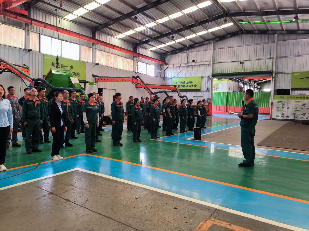 5月16日,厂长陈丙龙主持全体员工晨会,对近期生产任务、设备检验检修等具体工作进行详细部署。