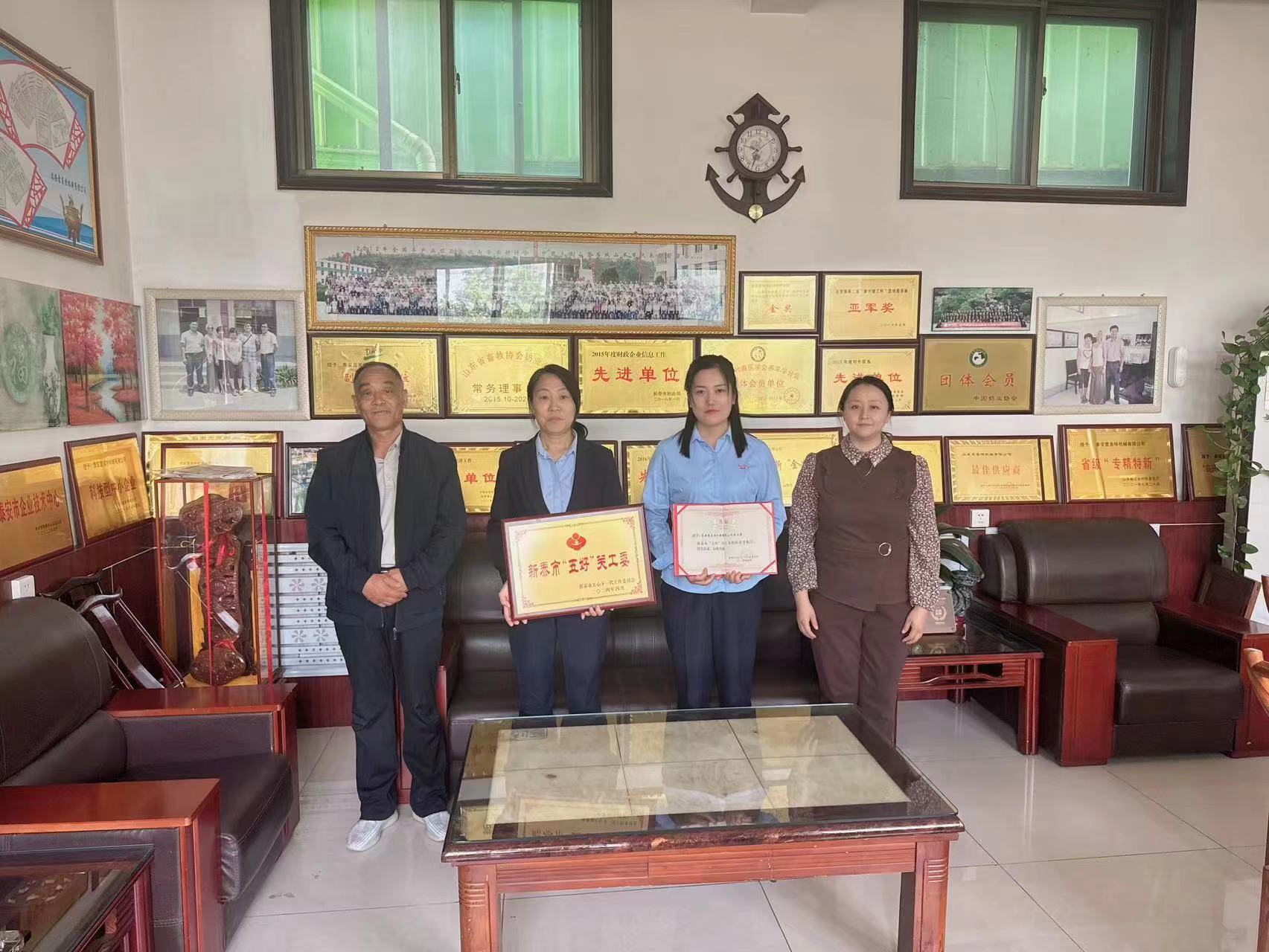 近期,公司关工委被新泰市关工委授予“新泰市五好关工委组织”荣誉称号。谷里镇有关负责同志到公司宣读表扬文件,颁发证书及荣誉牌匾。