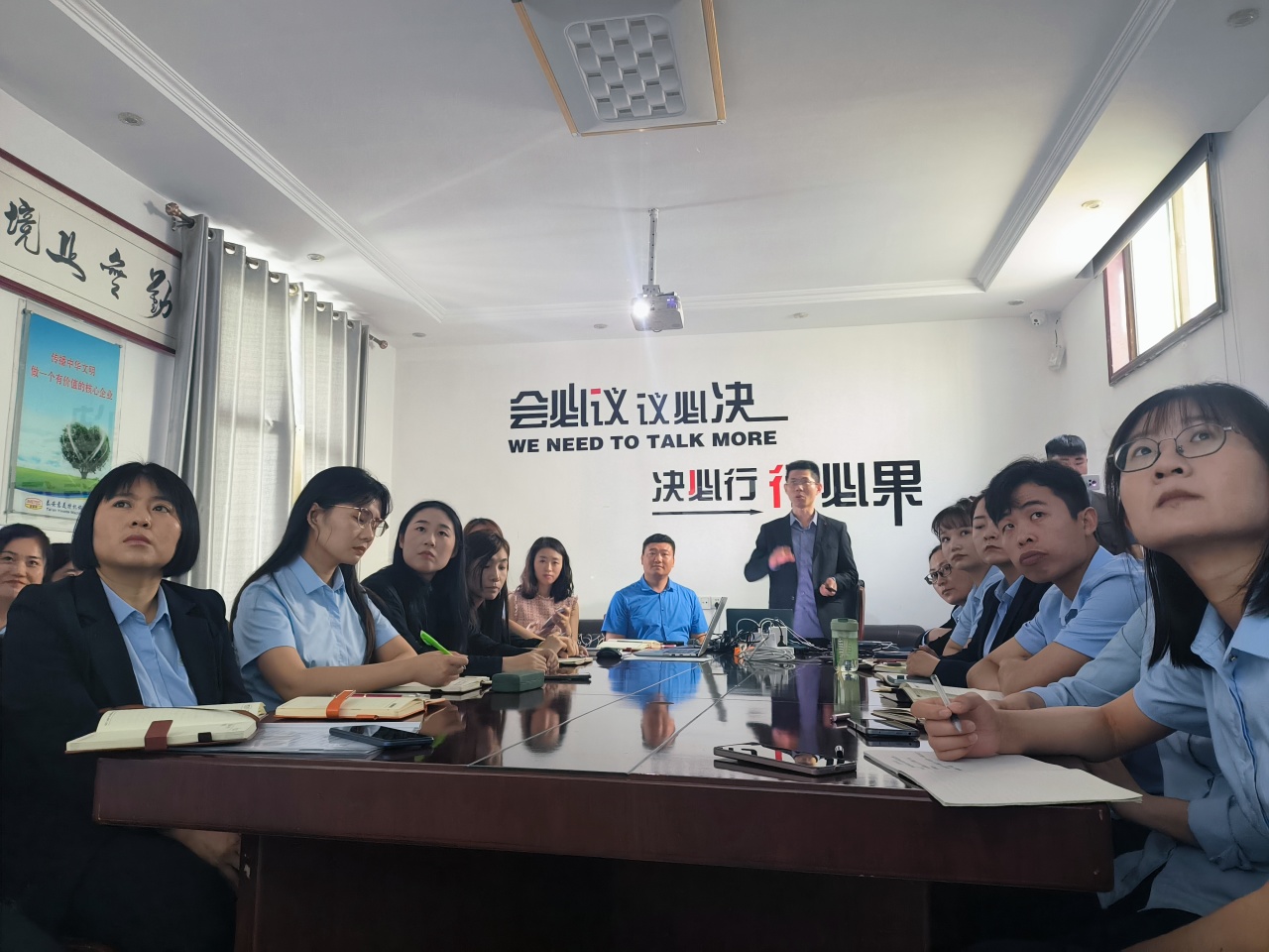 5月16日,科技公司陈老师受邀前来指导授课,通过数字化技术应用全员赋能销售、客销技能提升,全面为所有合作伙伴实现全生命周期服务做重点讨论。董事长董和银、总经理谭现玲,销售部、客销部全体成员参加。