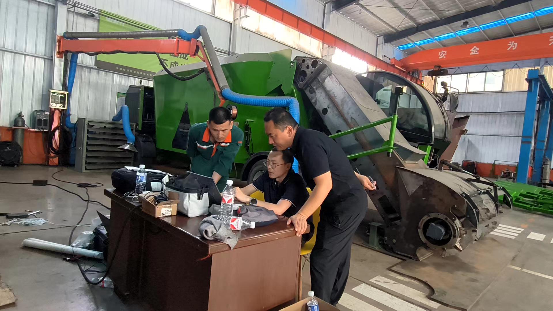 6月20日,山东农业大学范教授、电力系统徐工共同为公司升级自走式搅拌机控制系统。